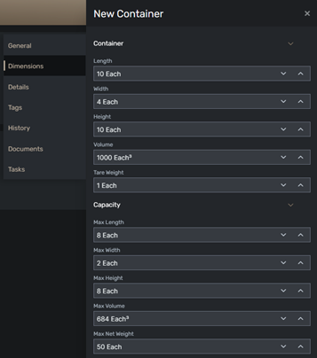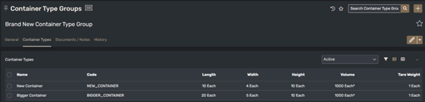 Shipping Containers can now be used when shipping orders. The Container Type Groups and Container Types modules can be used to set up the required standing data, defining the available containers, their dimensions, their costs, and grouping them together.