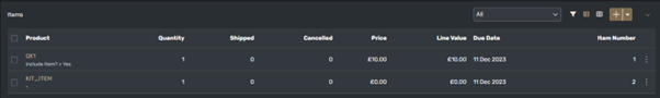 The financials sit against the kit product itself with each component added to the order at a 0.00 price. All processes, such as shipping and invoicing, are then carried out in the same way as for any other product.