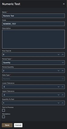 After assigning here, the test type can be modified with Process/Product specific Period and Tolerance (if Numeric) values.