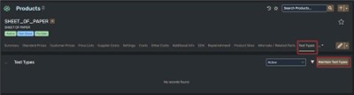 Assigning Test Types  To be able to use these Test Types, to record Test Results, you will need to assign them to a Product or Process (within a Structure) record. Within the Product, select Test Types and Maintain Test Types