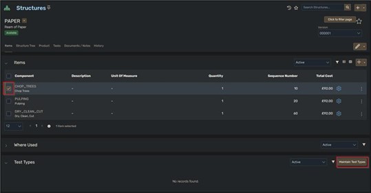 And within a Structure, select the relevant Process Item and Maintain Test Types: