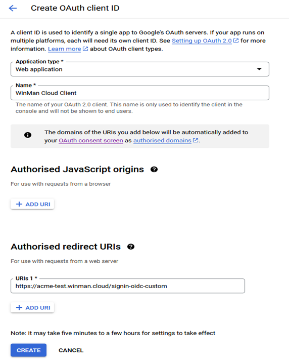 - Click the Add Uri button and enter the hostname of your cloud system followed by “/signin-oidc-custom” for example “https://acme.winman.cloud/signin-oidc-custom”