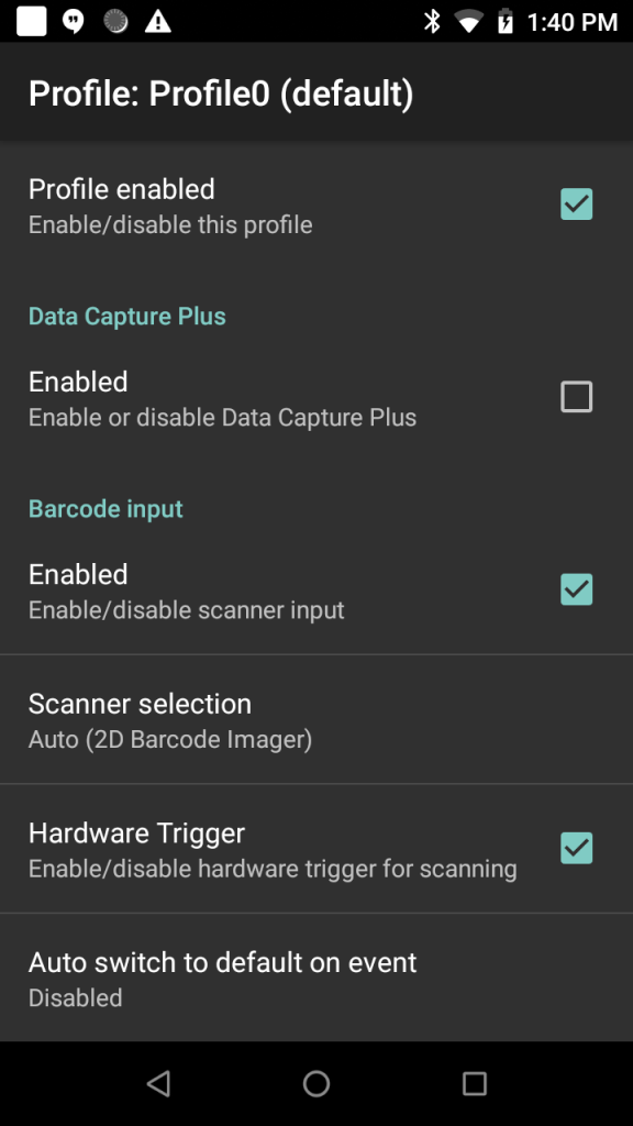 1. On your Android device, launch DataWedge. From the apps menu tap DataWedge.